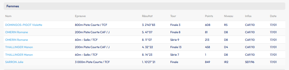 Félicitations à nos riomoises et riomois pour leurs performances que ce soit sur de trés courtes distances ou beaucoup plus longues, lors du meeting Loire et volcans en ce 17 janvier !!